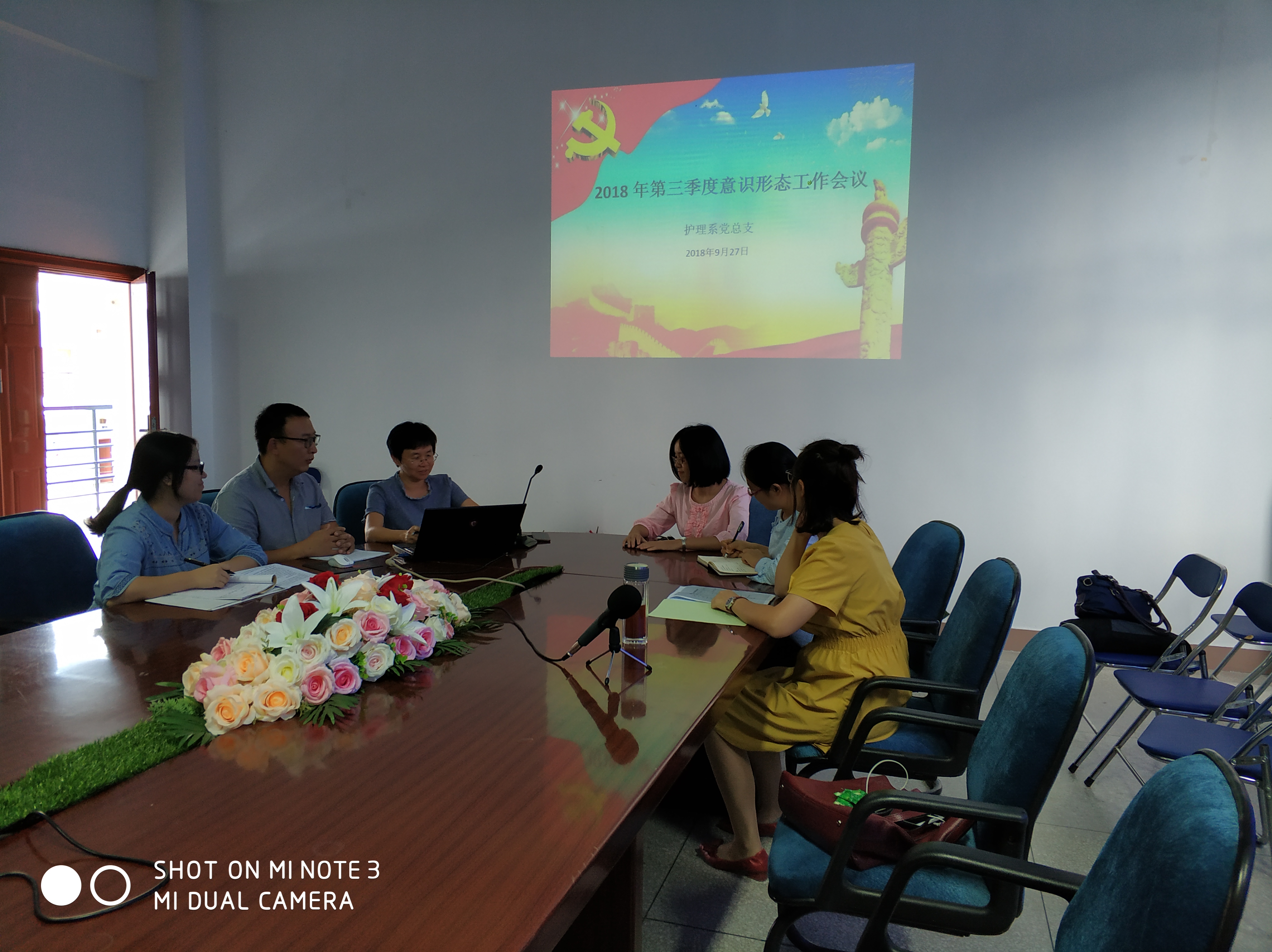 2018年9月27日上午,護(hù)理系黨總支委召開(kāi)2018年第三季度意識(shí)形態(tài)工作會(huì)議,護(hù)理系黨總支謝濤書(shū)記主持會(huì)議,護(hù)理系團(tuán)總支李寶珠書(shū)記列席了此次會(huì)議。