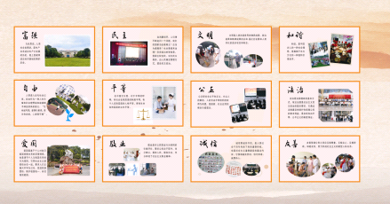 我系利用班會、講座、宣傳板報、線上多媒體等多種方式向全系師生宣傳解讀社會主義核心價值觀,號召全系師生爭做一名愛國守法、勤奮好學、明禮誠信、團結友善、敬業(yè)奉獻的人,以滿腔熱情積極投身到學習踐行社會主義核心價值觀的活動中去,將其內化于思想、外化于行動,立足現(xiàn)在,放眼未來,自覺踐行社會主義核心價值觀。