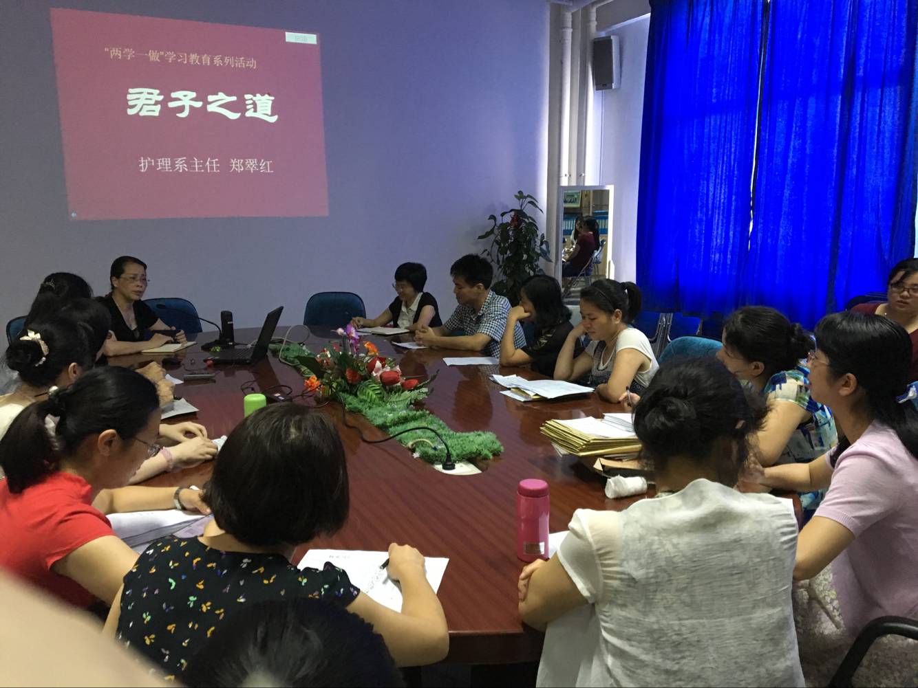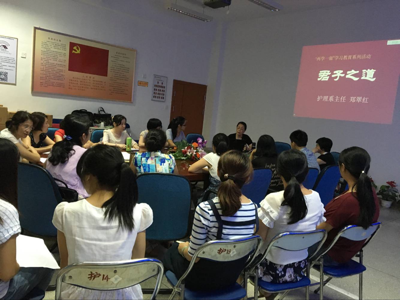 為貫徹落實(shí)中央要求,切實(shí)抓好 兩學(xué)一做 學(xué)習(xí)教育, 2016 6 14 日下午 3:00 ,護(hù)理系黨總支組織全體黨員教師在護(hù)理系 301 會(huì)議室舉行“兩學(xué)一做”學(xué)習(xí)教育——系主任好黨課,對(duì)全系黨員教師進(jìn)行了專題教育。