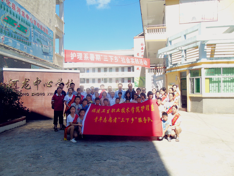 2016年7月7日,福建衛(wèi)生職業(yè)技術(shù)學(xué)院黨委書記林春明、黨委工作部部長和工會(huì)主席洪常青、護(hù)理系黨總支書記謝濤與寧化縣衛(wèi)生局鐘副局長、寧化縣中醫(yī)院張?jiān)洪L、河龍鄉(xiāng)衛(wèi)生院陳院長在福建螞蟻力量愛心聯(lián)合會(huì)會(huì)長楊貞凱的陪同下,來訪護(hù)理系暑期三下鄉(xiāng)寧化支隊(duì)所在地——三明市寧化縣河龍中心小學(xué),傳達(dá)學(xué)院及當(dāng)?shù)赜嘘P(guān)部門對(duì)三下鄉(xiāng)實(shí)踐隊(duì)伍的誠摯問候與關(guān)懷。