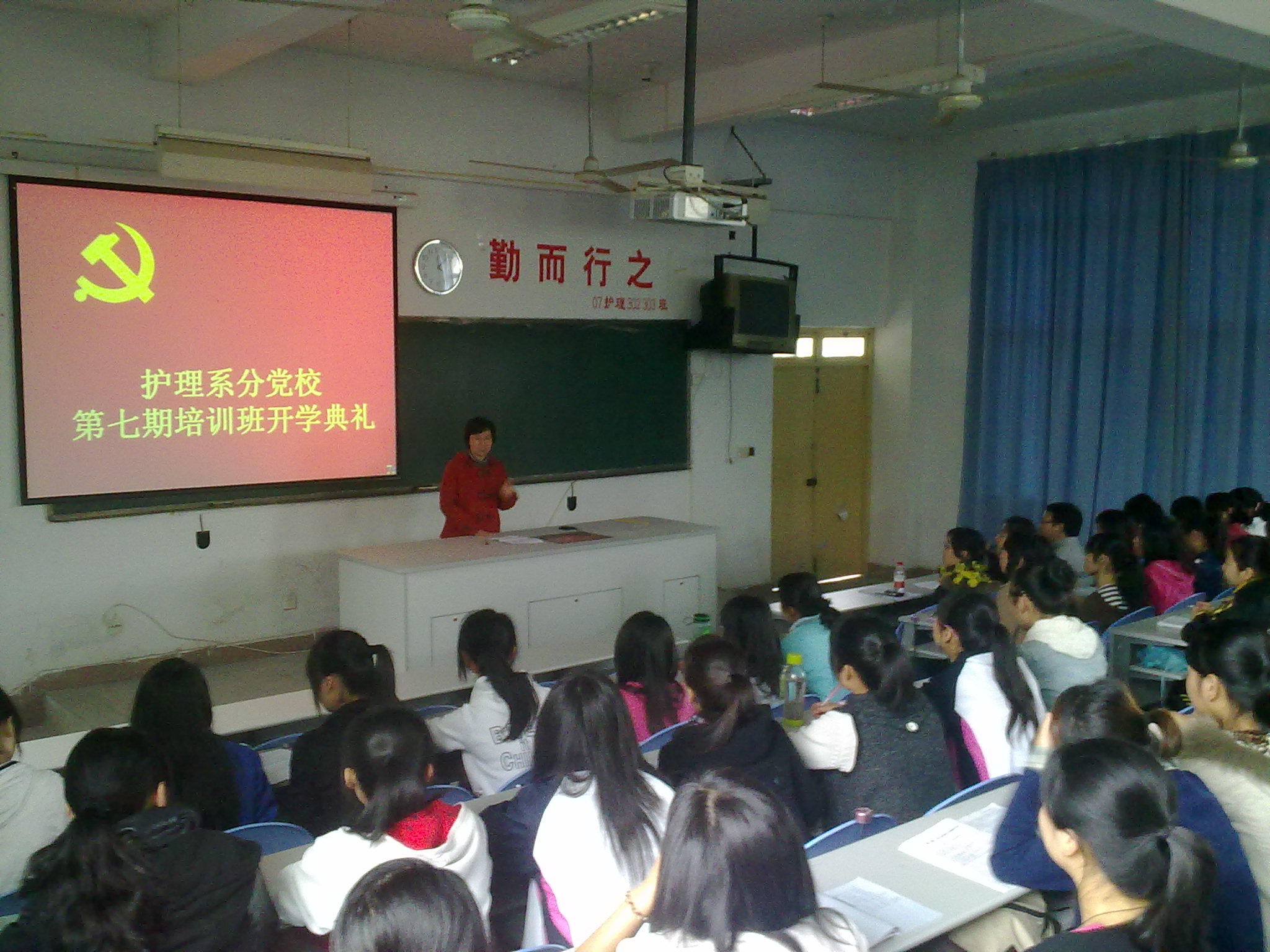 2011年5月4日下午,護(hù)理系分黨校第七期學(xué)習(xí)班開班典禮在護(hù)理系第一階梯教室舉行。護(hù)理系黨總支按照院黨校的要求,做好入黨積極分子的培養(yǎng)與組織發(fā)展,高度重視此次培訓(xùn)班的組織工作。我系黨總支謝濤書記與各位輔導(dǎo)員出席了此次典禮。