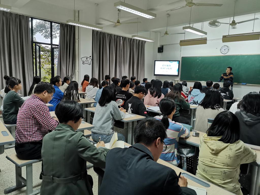 為推動“不忘初心、牢記使命”主題教育不斷往深里走、往實里走。1030日,學院領導蘇友新院長深入護理系2019級老年保健與管理301班開展聽課活動,并聚焦老年保健與管理專業(yè)師生最關心、最直接、最現(xiàn)實的問題開展調(diào)查研究。護理系黨總支謝濤書記、林桂松副書記,老年保健與管理專業(yè)負責人李淼淼副教授以及輔導員李慶老師一同參加課聽課和調(diào)研活動。