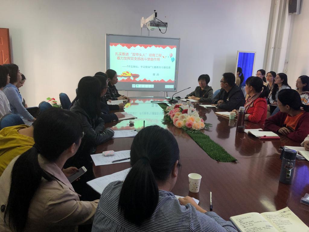黨總支書記謝濤講授“不忘初心、牢記使命,扎實推進‘雙帶頭人’培育工程,著力發(fā)揮黨支部戰(zhàn)斗堡壘作用”主題黨課。謝濤書記強調(diào)“不忘初心、牢記使命”是貫徹黨的十九大精神的重要舉措?!安煌跣?、牢記使命”是黨保持永遠年輕的重要法寶?!安煌跣?、牢記使命”是黨始終銘記歷史的重要力量。