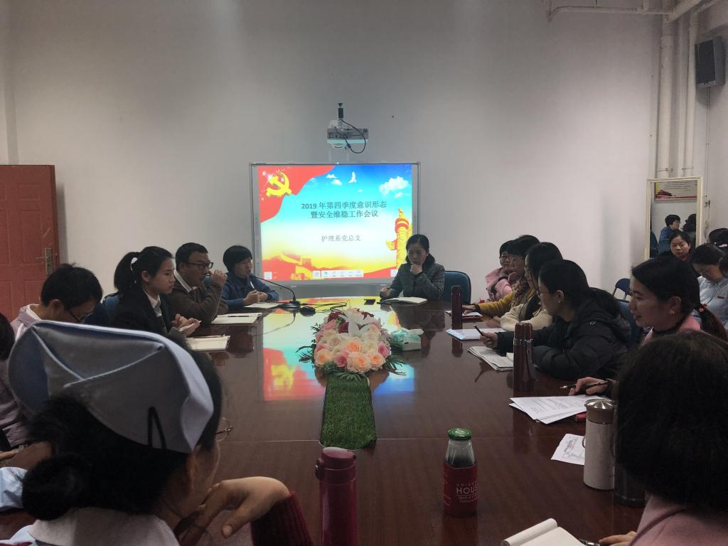 12月19日,我系第四季度意識形態(tài)暨安全維穩(wěn)工作會議在護(hù)理系301會議室舉行。護(hù)理系黨總支謝濤書記主持會議,護(hù)理系全體教師參加會議。