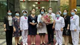 5月11日下午,學(xué)院黨委書(shū)記曾武祈(右四)、副院長(zhǎng)鄭翠紅(左四)等人來(lái)到福建省立醫(yī)院,為學(xué)院校友、福建援鄂專(zhuān)科護(hù)理隊(duì)領(lǐng)隊(duì)李紅(中)送上慰問(wèn)禮。