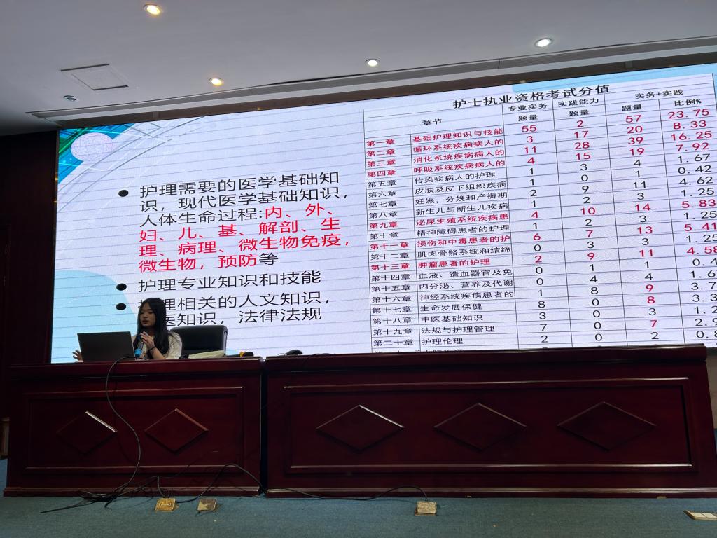 隨后,22護理313班楊佳雯同學(xué)就考試難度、題型和真題解答進行細(xì)致解說,分享了自己的備考經(jīng)驗、解題技巧以及快速記憶法,同時還與大家在現(xiàn)場就真題進行了互動答疑,以自己高分通過護考的經(jīng)驗告訴同學(xué)們采用何種方法記憶快速準(zhǔn)確。