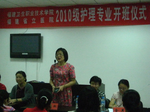 2011年8月29日(星期一)上午8:00,在省立醫(yī)院門診健康促進中心,福建衛(wèi)生職業(yè)技術(shù)學(xué)院及省立醫(yī)院為院校合作護理專業(yè)示范班舉行了隆重的開班儀式。出席開班儀式的領(lǐng)導(dǎo)有:省立醫(yī)院李紅副院長、省質(zhì)控中心王小芳主任、省立醫(yī)院護理部金爽副主任、護理督導(dǎo)辦陳美容主任、福建衛(wèi)生職業(yè)技術(shù)學(xué)院護理系劉登蕉主任、謝濤書記、劉珍紅副主任。來自院校雙方的合作教改課程的主要負(fù)責(zé)老師李淼淼、宋亦男、連劍娟、穆艷、李娜、黃允釗,以及全班40位學(xué)生參加了儀式。