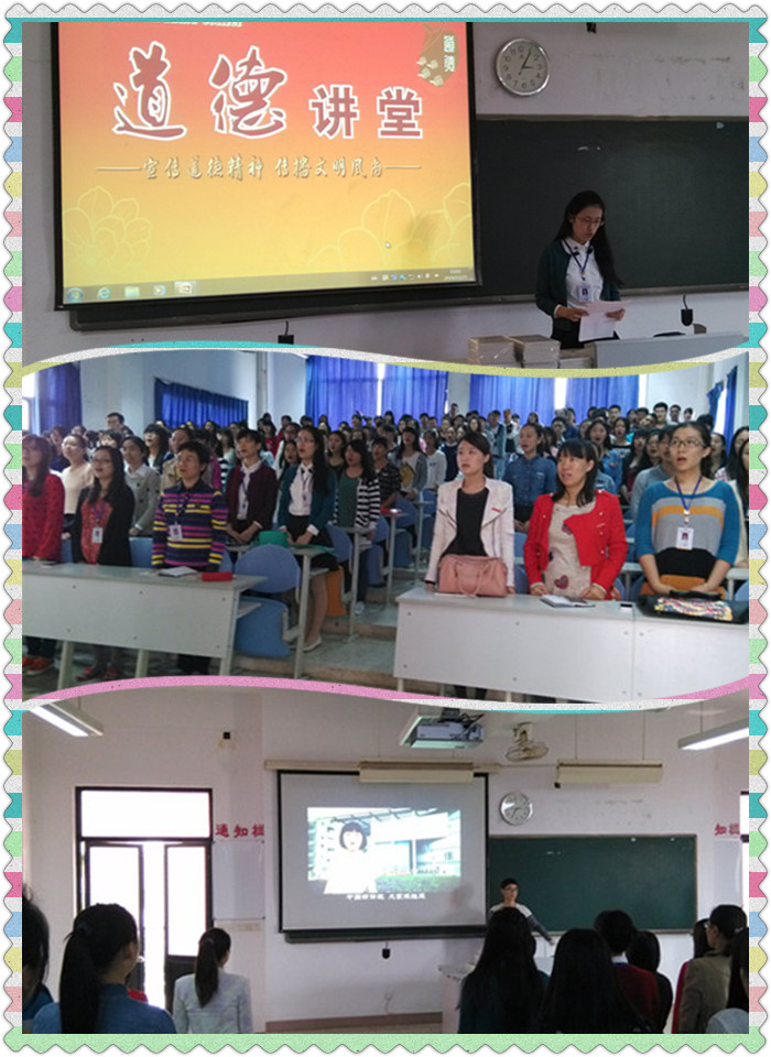 為深入學(xué)習(xí)貫徹黨的十八大精神,扎實推進社會主義核心價值體系建設(shè),提升師生道德素質(zhì)和校園文明程度,引導(dǎo)廣大學(xué)生遵守公共道德,提升道德素質(zhì),共建和諧校園,護理系于2014年11月25日下午在教學(xué)樓209 舉辦了以“講道德、倡善行、樹新風,建設(shè)魅力校園”為主題的道德講堂活動。護理系黨總支謝濤書記、各班級輔導(dǎo)員以及護理系學(xué)生參加了本次活動。