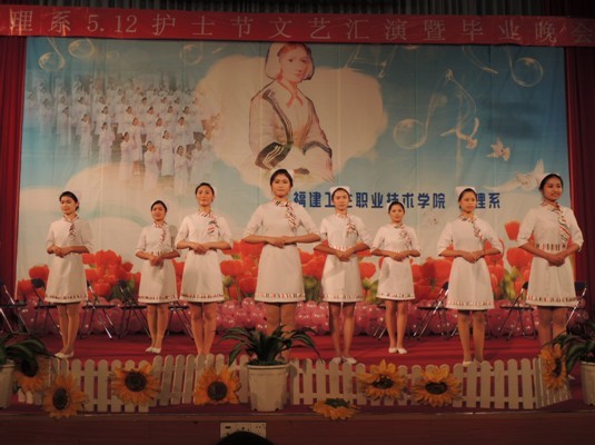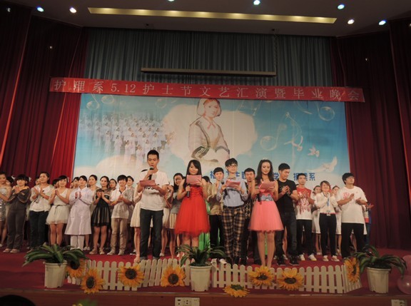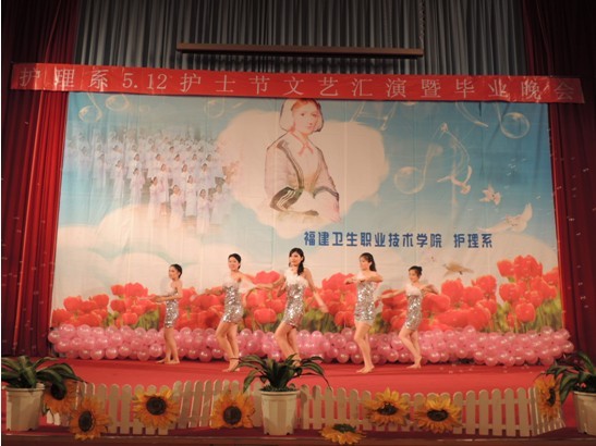 福建衛(wèi)生職業(yè)技術(shù)學(xué)院護理系于2013年5月7日晚7:00在學(xué)術(shù)廳迎來了5.12護士節(jié)文藝匯演暨畢業(yè)晚會。院黨委陳雄副書記、黃開良副院長、魏立娜副院長、學(xué)生工作處黃銘珊處長、護理系黨總支謝濤書記、院團委宋維副書記及各系團總支書記、老師、輔導(dǎo)員蒞臨了本次晚會。