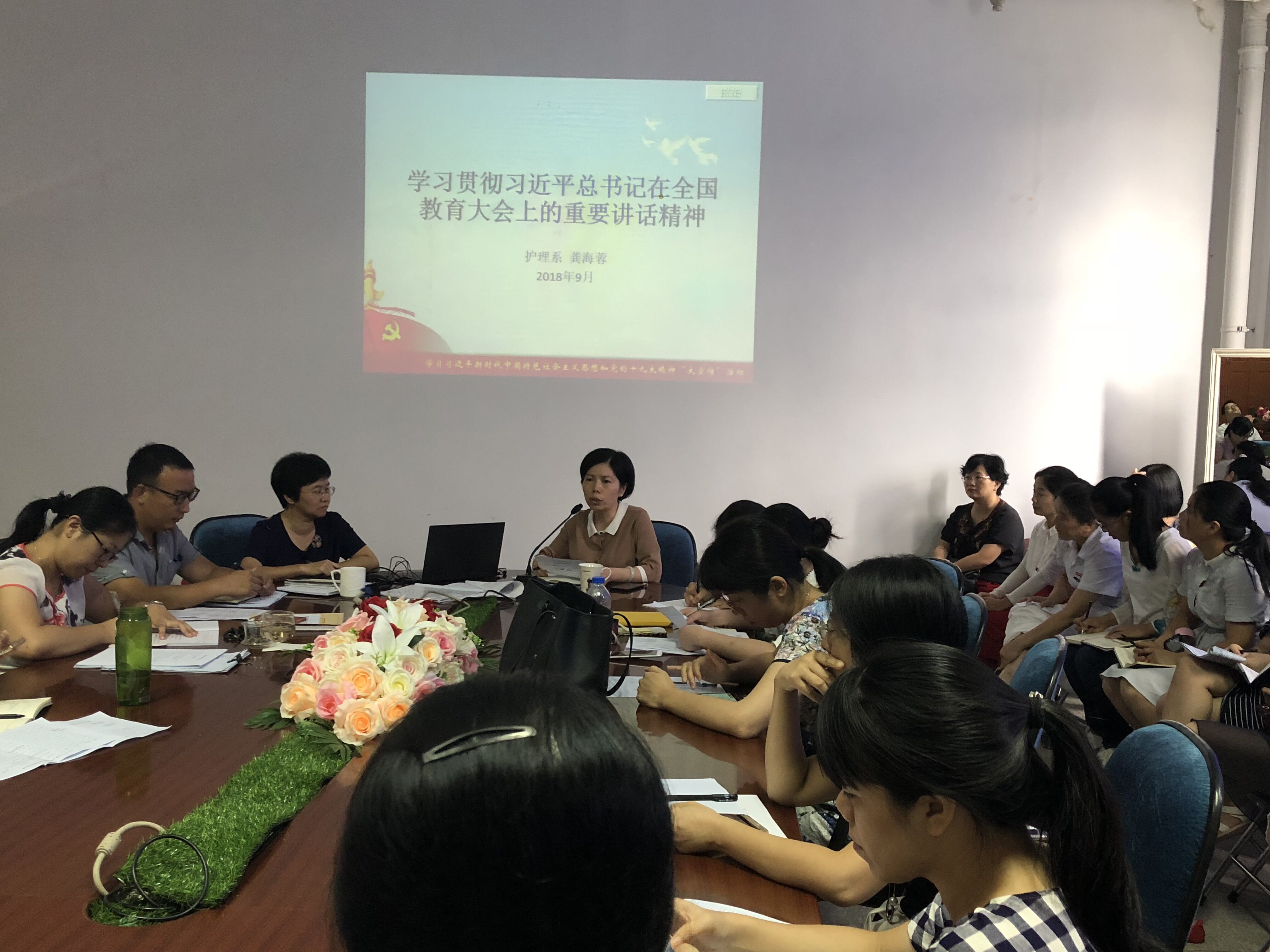 日,護理系學(xué)習(xí)習(xí)近平總書記在全國教育大會上的重要講話精神會議在護理系三樓會議室召開,會議由護理系龔海蓉主任主講,我系全體教職工參加。