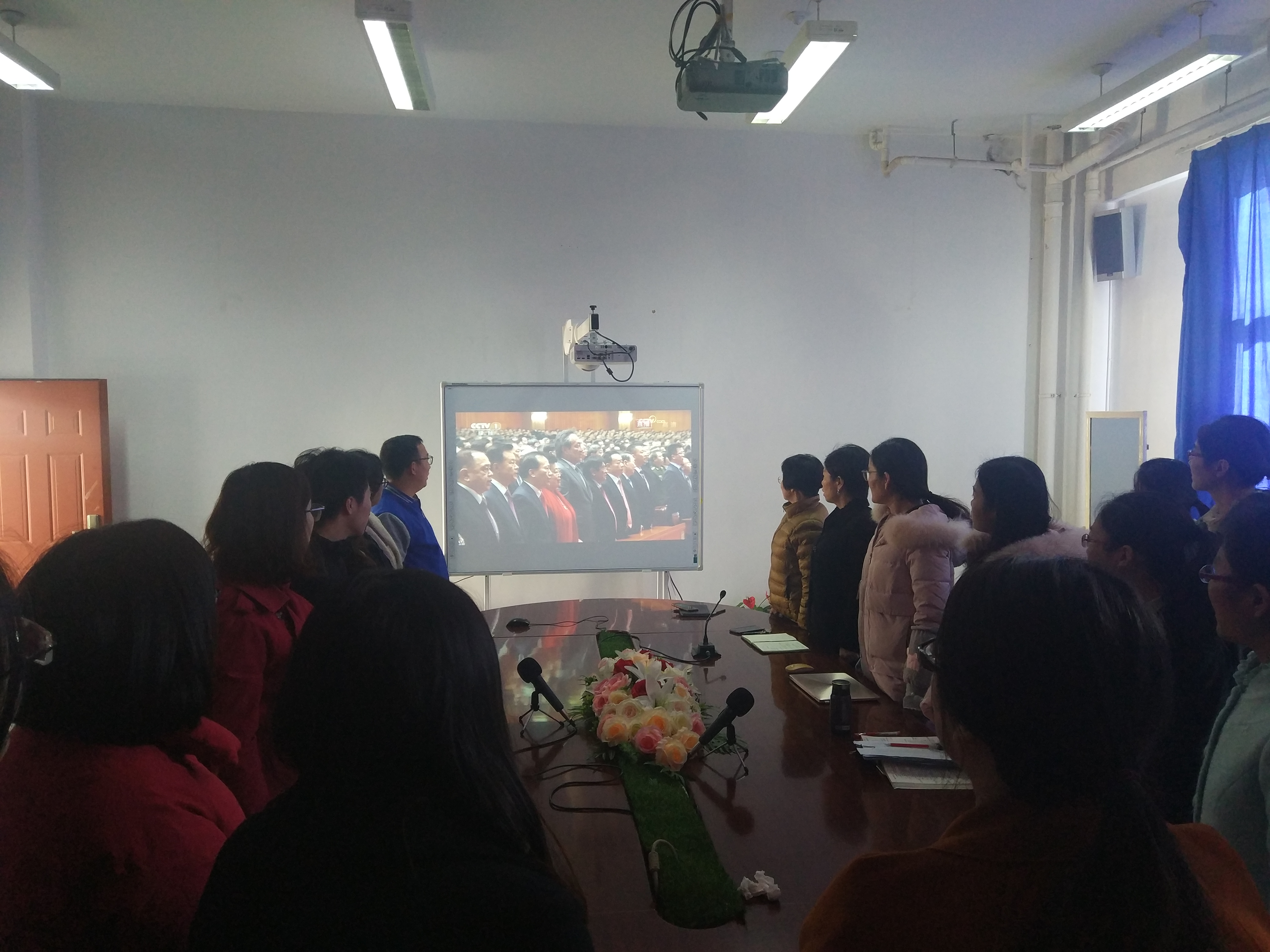 護理黨總支組織全系無教學(xué)任務(wù)的教師集中看大會直播(齊唱國歌)