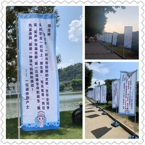 一面旗子上的寄語隨即映入我的眼簾———“接生婆,畢業(yè)時,一群青春靚麗的女孩,在畢業(yè)同學錄的職業(yè)一欄寫上‘接生婆’,寫完就是一陣狂笑,笑聲中充滿自豪,第一次目睹生命的誕生,我熱血沸騰,那是一種蕩氣回腸的感動?!边@似乎是一位退休老師寫的。這讓未來助產專業(yè)的我,堅定了我自己的選擇,助產是一個非常神圣的專業(yè),救死扶傷的天職讓我更有了未來學習的動力。我相信我能夠本著“業(yè)精德誠”的校訓,貫徹落實習近平總書記的新時代理念,努力走在新時代的前端,樹立正確的社會主義核心價值觀,在大學里為人生增添不一樣的色彩!