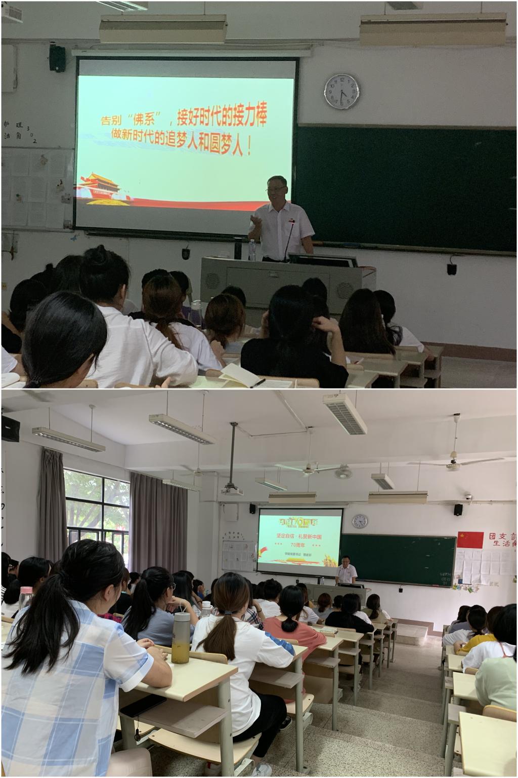 為進一步貫徹落實習近平總書記系列重要講話精神,做好高校思想政治工作,堅持因事而化、因時而進、因勢而新,堅持圍繞學生、關照學生、服務學生,增強學生的愛國熱忱。2019年9月5日下午,院黨委書記曾武祈于教111為護理系18級學生進行了一場主題為《堅定自信,禮贊中國七十周年》的講座。