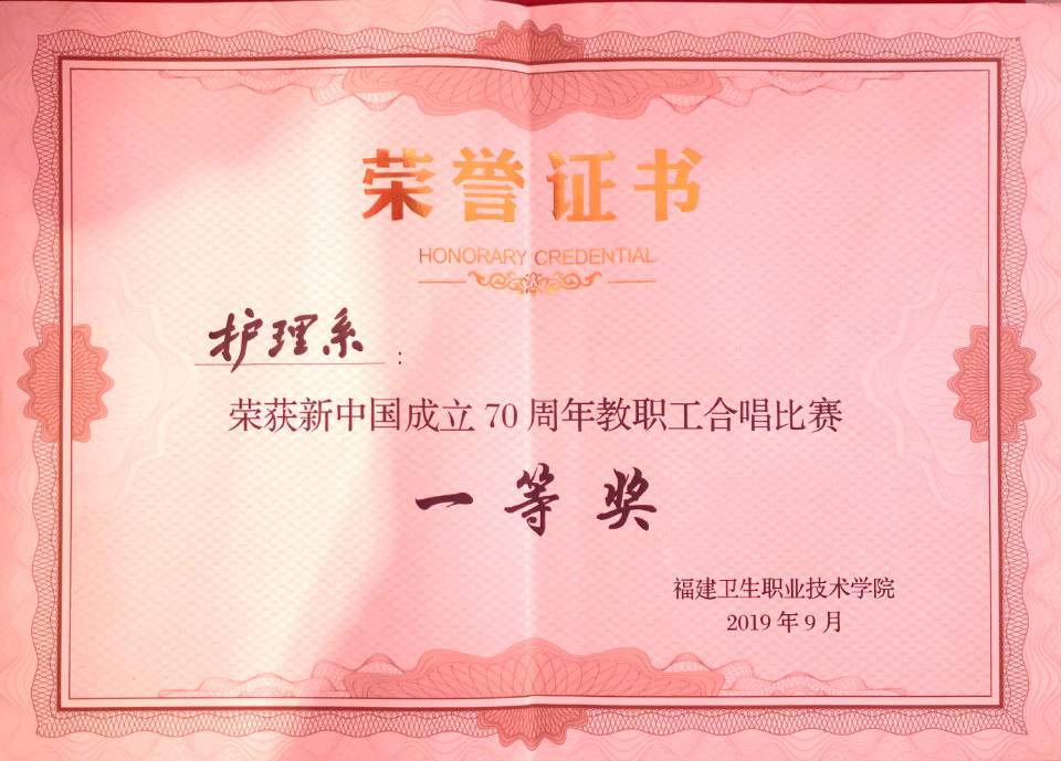 嘹亮的歌聲,喚起中華兒女的自豪和向往;優(yōu)美的旋律,奏響中華民族偉大復(fù)興的壯麗樂(lè)章。9月26日,“頌歌獻(xiàn)祖國(guó)”福建衛(wèi)生職業(yè)技術(shù)學(xué)院慶祝新中國(guó)成立70周年教職工合唱比賽在學(xué)術(shù)廳拉開(kāi)帷幕,由各部門各系部組成的8支參賽隊(duì)伍用動(dòng)聽(tīng)的歌聲向祖國(guó)獻(xiàn)上最美好的祝福。經(jīng)過(guò)激烈角逐,護(hù)理系代表隊(duì)合唱的歌曲《彈起我心愛(ài)的土琵琶》、《年輕的朋友來(lái)相會(huì)》榮獲一等獎(jiǎng)。
