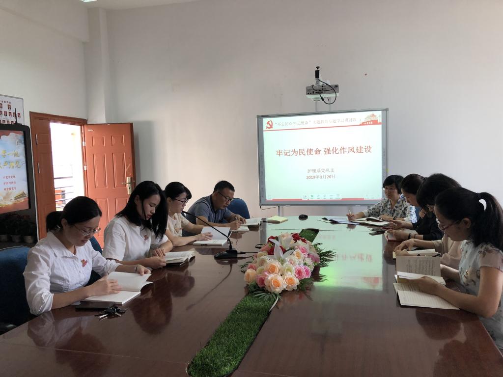 9月26日,護理系黨總支在系部會議室開展主題為“牢記為民使命,強化作風建設(shè)”專題學習研討交流會。護理系黨總支書記謝濤同志主持會議,并與護理系黨總支副書記暨副主任龔海蓉(主持工作)作主要交流發(fā)言。護理系全體黨員參加了本次學習研討。