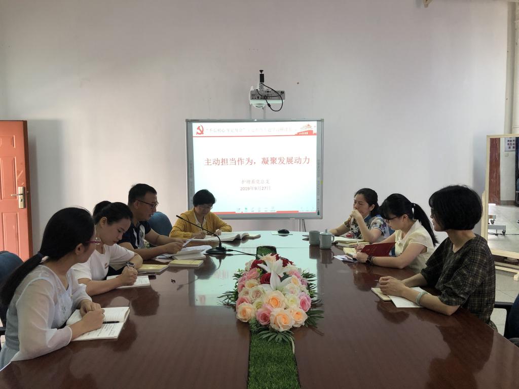 9月27日,護(hù)理系黨總支在系部會議室開展主題為“主動擔(dān)當(dāng)作為,凝聚發(fā)展動力”專題學(xué)習(xí)研討交流會。護(hù)理系黨總支書記謝濤同志主持會議,護(hù)理系黨總支副書記林桂松與副主任王憲寧作主要交流發(fā)言。護(hù)理系黨政聯(lián)席會班子成員、護(hù)理系黨總支委委員參加了本次學(xué)習(xí)研討。