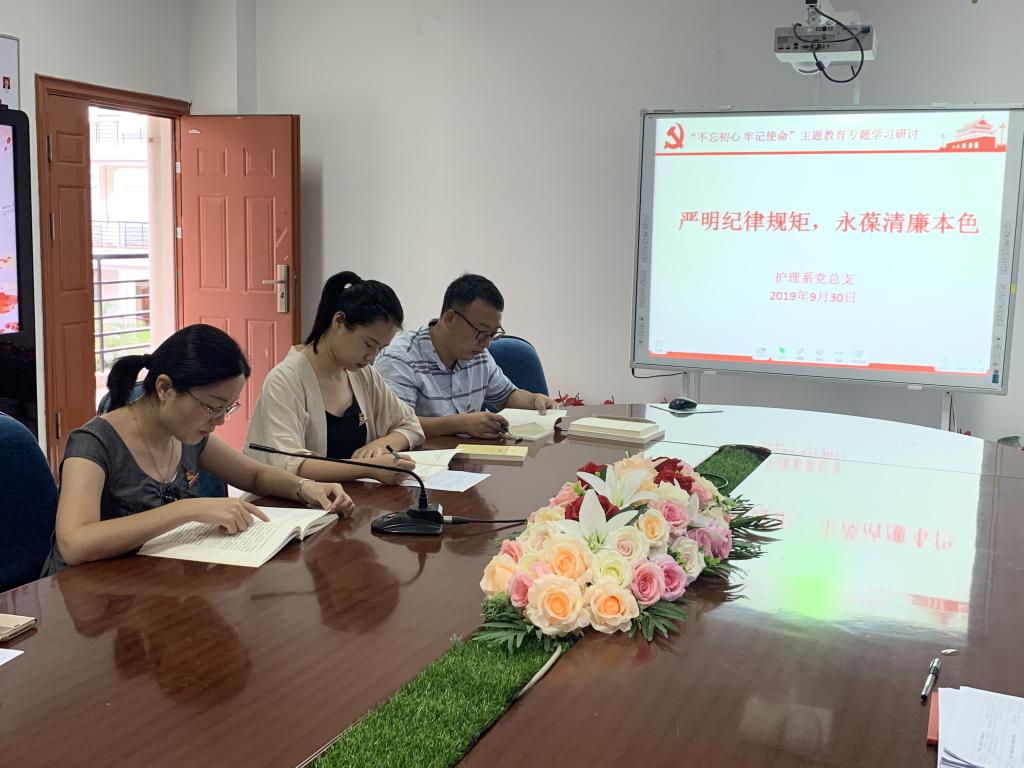 學(xué)習(xí)研討會(huì)上,首先由護(hù)理第二黨支部書記陳雪珍同志帶領(lǐng)大家通讀并學(xué)習(xí)了《習(xí)近平關(guān)于“不忘初心、牢記使命”論述摘編》中《勇于自我革命,同一切影響黨的先進(jìn)性、弱化黨的純潔性的問題作堅(jiān)決斗爭(zhēng)》篇章。