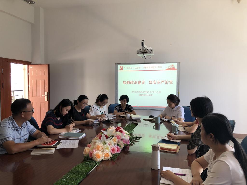 研討會,首先由護理系黨總支副書記林桂松同志帶領(lǐng)大家一起學(xué)習(xí)了《習(xí)近平關(guān)于“不忘初心、牢記使命”重要論述選編》中的《堅定不移推進全面從嚴(yán)治黨》。其次,護理系第一黨支部書記賈箐箐同志和護理系第二黨支部書記陳雪珍同志進行主要交流發(fā)言。賈箐箐同志從以習(xí)近平新時代中國特色社會主義思想為指導(dǎo),全面提升黨員隊伍素質(zhì)、把黨的政治建設(shè)放在首位,有效發(fā)揮黨支部戰(zhàn)斗堡壘作用、狠抓黨建基礎(chǔ)工作,不斷優(yōu)化黨支部管控方式等方面做了發(fā)言,強調(diào)強化黨員教育與管理,加強政治建設(shè),落實全面從嚴(yán)治黨。陳雪珍同志從主題黨日活動激發(fā)黨員活力、集中學(xué)習(xí)交流提升黨員能力、強化日常工作凝聚黨員合力等三個方面闡述了今后抓實抓好支部多項工作,全面提升新時代黨支部的工作力和凝聚力的工作思路。