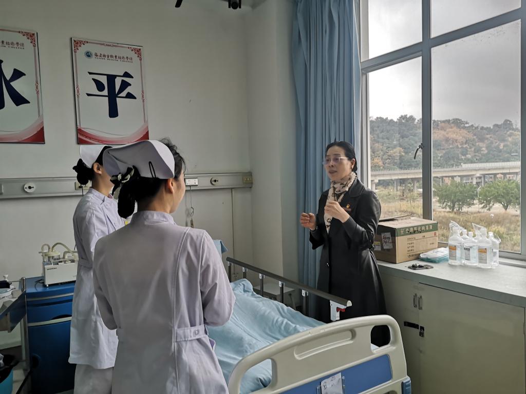 2019年12月19日中午,學校鄭翠紅副校長蒞臨護理系實訓中心為即將出征2020年福建省高職院校護理技能競賽的中職組和高職組選手的操作給出一定的意見,并在技能操作經驗和臨場心理調整等方面進行現(xiàn)場指導。