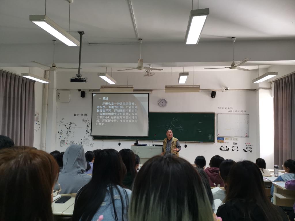 講座中,鄭悅老師主要圍繞肝硬化的病因、病機(jī)、防治以及我國(guó)肝硬化疾病的趨勢(shì)和肝硬化病人的急危重癥的處置等方面開(kāi)展,講座語(yǔ)言風(fēng)趣、內(nèi)容豐富,通過(guò)生動(dòng)形象的臨床案例將知識(shí)和技能灌輸給學(xué)生。