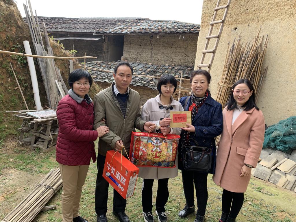 為幫助家庭經(jīng)濟困難學生度過一個溫暖、安心的假期,在新春佳節(jié)即將來臨之際,護理系關(guān)工委劉登蕉老師、劉珍紅老師、護理系謝濤書記、龔海蓉主任以及輔導員李英,李慶分別前往19護理315班特困生林靈瑩、18護理301班特困生潘秀娟家中開展慰問走訪活動。