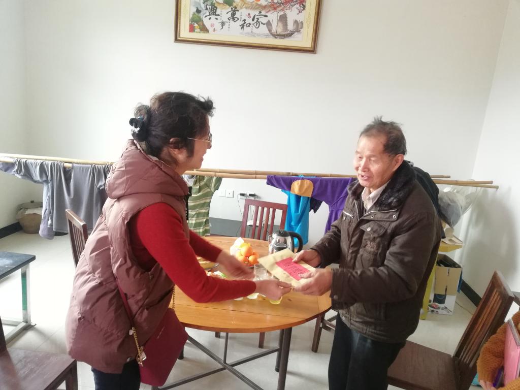 在學生家中,關(guān)工委的老師和系部領導與學生家長親切交談,向家長介紹了學校困難幫扶舉措,反饋了學生在校表現(xiàn),并且詳細了解了學生家庭情況。謝濤書記和龔海蓉主任都鼓勵學生要努力學習,以樂觀開朗的心態(tài)面對暫時的困境,樹立自信心,學有所成。最后,關(guān)工委劉登蕉老師和劉珍紅老師代表護理系關(guān)工委向?qū)W生送去慰問金以及節(jié)日的問候和祝福。學生家長對我系關(guān)工委一行的到訪,致以由衷的感激。學生表示今后一定會自強不息、不斷進取、學會感恩,以優(yōu)異的成績報答學院和社會。