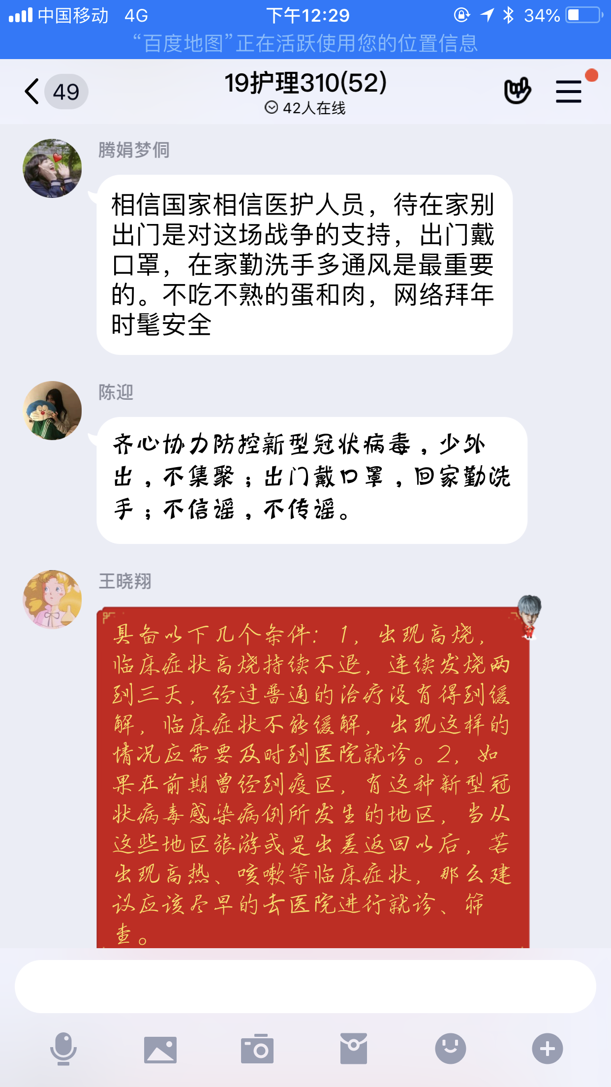 1月29日,護理系各黨支部以學習強國視頻會議的形式召開黨員大會,護理系各班級以QQ群視頻會議、YY視頻會議等形式召開主題班會,將習近平總書記關于當前新型冠狀病毒感染肺炎疫情防控工作重要指示精神以及學院黨委中心組(擴大)會議精神等傳達到每位師生。