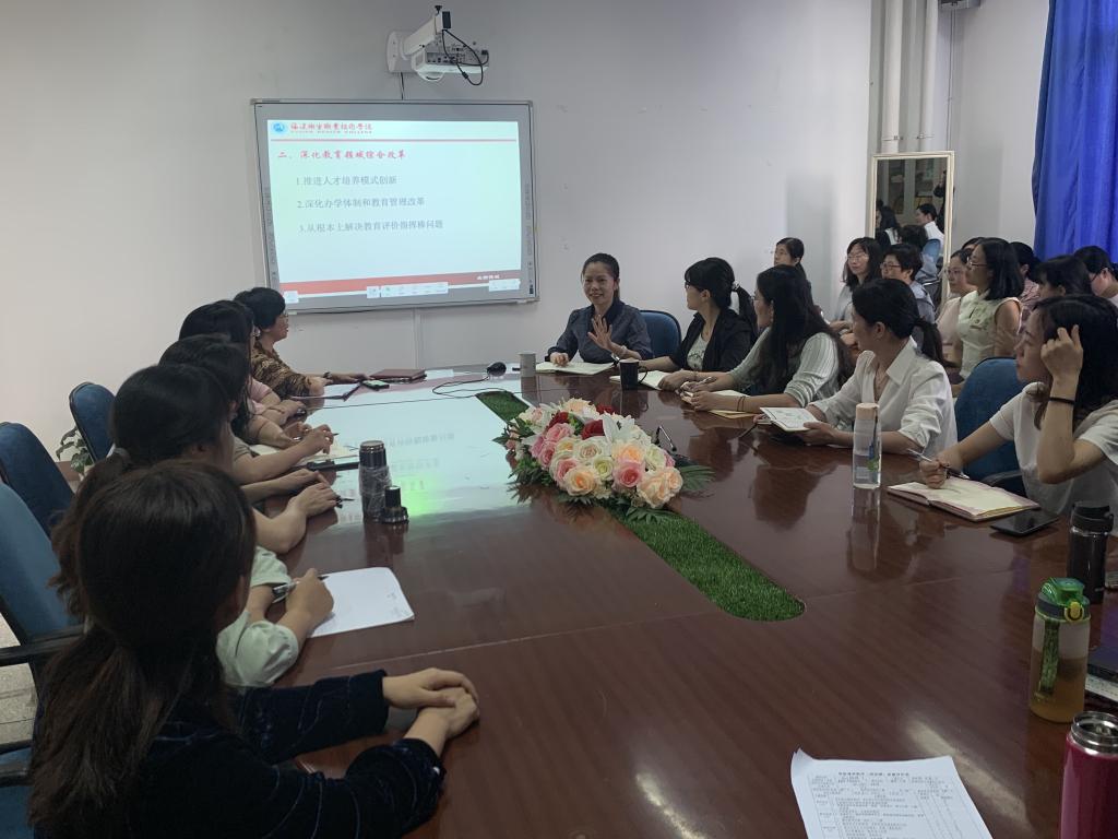龔海蓉從改革是教育事業(yè)發(fā)展的根本動力、深化教育領(lǐng)域綜合改革、以擴大教育開放提升我國教育世界影響力、建設(shè)高水平護理專業(yè)群四個方面組織學習了《習近平總書記教育重要論述講義》第七講,并結(jié)合系部專業(yè)建設(shè)分享了職教改革工作的相關(guān)心得和體會,以及護理系下一步建設(shè)高水平護理專業(yè)群工作思路和部署。
