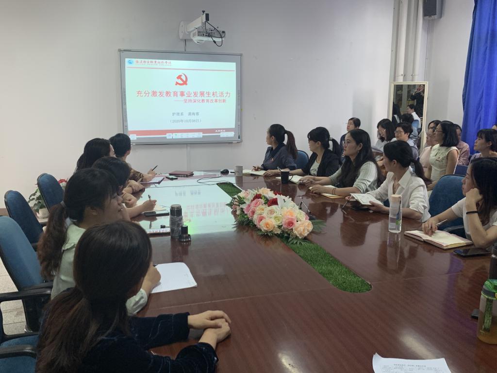 10月8日,護理系黨總支召開黨員大會,護理系總支副書記、系主任龔海蓉以《充分激發(fā)教育事業(yè)發(fā)展生機活力——堅持深化教育改革創(chuàng)新》為題,為護理系全體黨員講授學習《習近平總書記教育重要論述講義》專題黨課,護理系全體黨員聆聽了本次黨課。