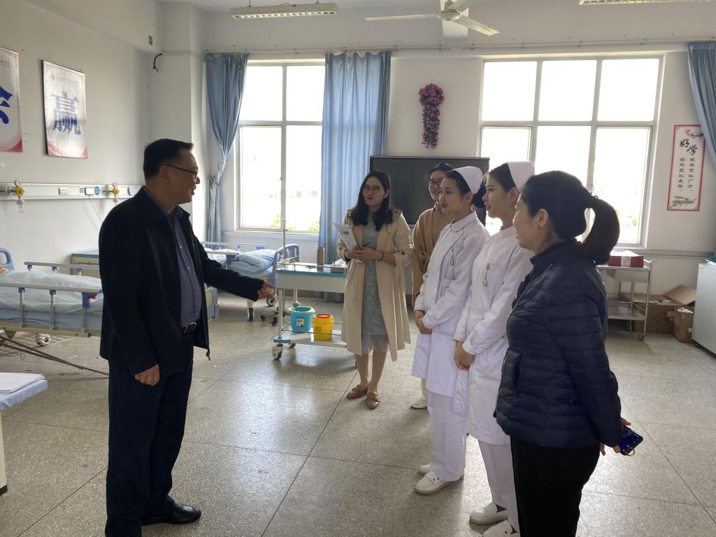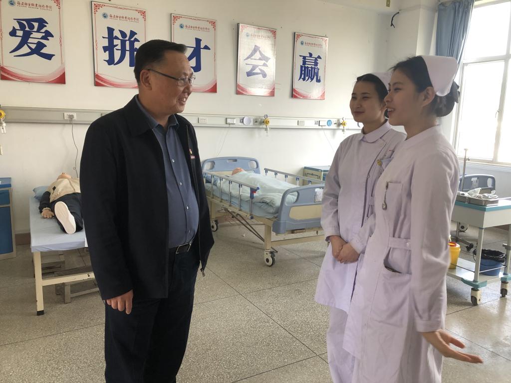 2021年3月24日,校黨委書記曾武祈蒞臨護(hù)理學(xué)院實(shí)訓(xùn)中心看望備戰(zhàn)2021年福建省護(hù)理技能競(jìng)賽的學(xué)生選手和指導(dǎo)教師。