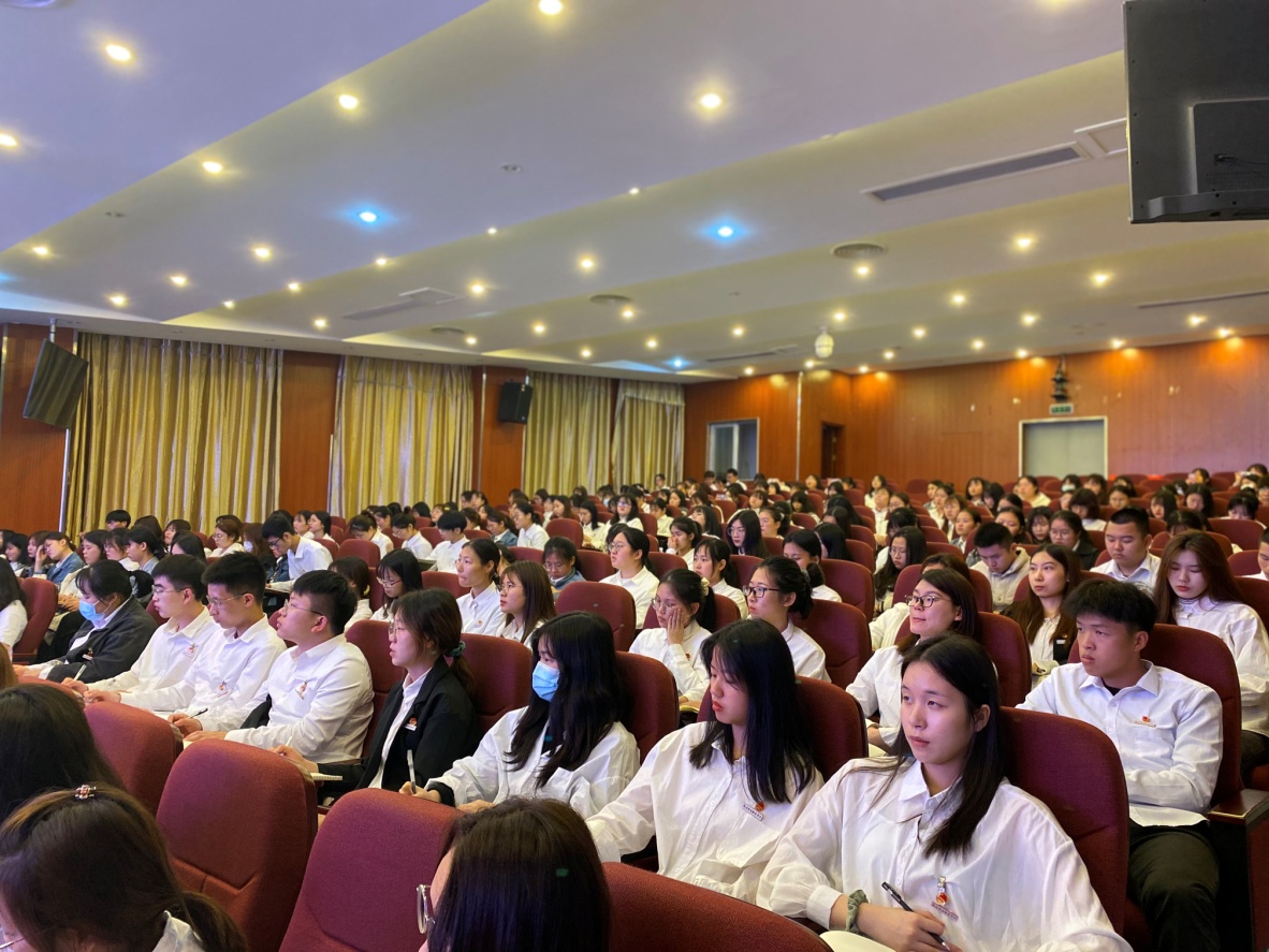 為貫徹落實(shí)黨的十九屆五中全會精神,2021年4月15日,護(hù)理學(xué)院分黨校第一期培訓(xùn)班第三次集中授課于實(shí)訓(xùn)樓4樓報告廳舉行。本次黨課由護(hù)理學(xué)院第一黨支部書記吳美丹主講,護(hù)理學(xué)院300余名入黨積極分子參加。