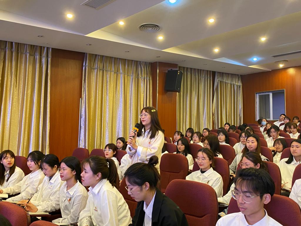 為進一步加強入黨積極分子對黨組織的認識,提高政治思想覺悟。2021年4月15日,護理學院分黨校第一期培訓班第四次集中授課于實訓樓4樓報告廳舉行。本次黨課由護理學院黨總支宣傳委員、護理學院第二黨支部副書記賈箐箐主講《黨員的義務與權利、黨的紀律》,護理學院300余名入黨積極分子參加。