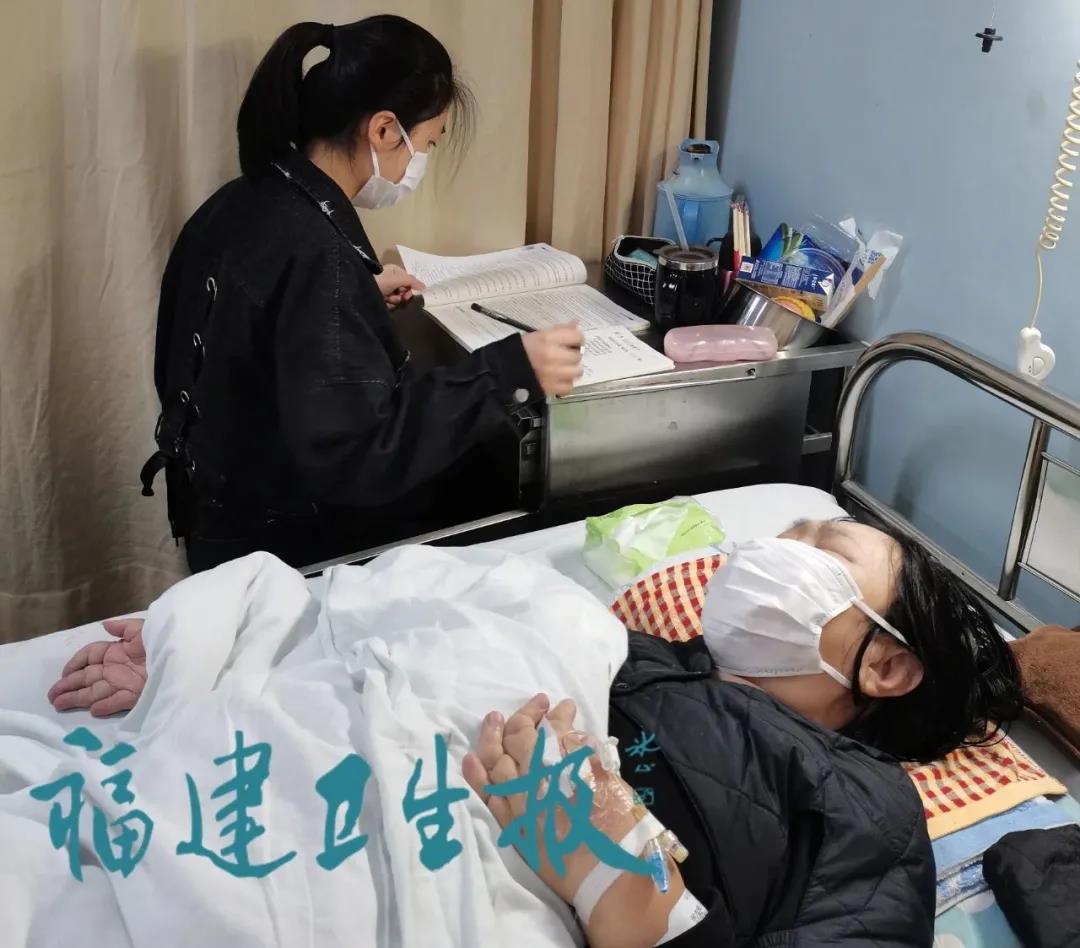 近日,在福建醫(yī)科大學(xué)附屬第一醫(yī)院風(fēng)濕科病房里,總是能看到一位姑娘在病床前學(xué)習(xí)的身影。那是福建衛(wèi)生職業(yè)技術(shù)學(xué)院護(hù)理學(xué)院的學(xué)生王林慧在復(fù)習(xí)功課。