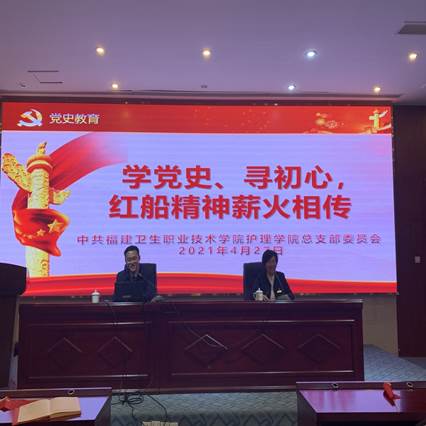 2021年4月27日,護(hù)理學(xué)院黨總支在實訓(xùn)樓四樓報告廳舉行特邀組織員聘任儀式暨“學(xué)黨史、尋初心,紅船精神薪火相傳”主題黨日活動。本次活動邀請了中共福建省委黨校黨的建設(shè)教研部鄭濟(jì)洲博士來校授課。校黨委副書記李美華、組織統(tǒng)戰(zhàn)部部長吳華、副部長謝宗穎、人事處副處長劉明珠,組織統(tǒng)戰(zhàn)部、人事處、護(hù)理學(xué)院黨總支全體教職工黨員、學(xué)生工作部部分輔導(dǎo)員及護(hù)理學(xué)院黨總支全體入黨積極分子共200余人參加了此次活動。