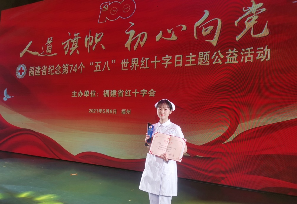 為進(jìn)一步弘揚(yáng)“人道、博愛、奉獻(xiàn)”的紅十字精神,宣傳紅十字保護(hù)人的生命和健康,促進(jìn)人類和平進(jìn)步事業(yè)的宗旨,2021年5月8日,福建省紅十字會(huì)在福州大戲院舉辦了“人道旗幟,初心向黨”福建省紀(jì)念第74個(gè)“世界紅十字日”主題公益活動(dòng)暨南丁格爾獎(jiǎng)學(xué)金頒獎(jiǎng)典禮。該項(xiàng)獎(jiǎng)學(xué)金基金由第47屆南丁格爾獎(jiǎng)?wù)芦@得者李紅首倡發(fā)起,對(duì)我省就讀的品學(xué)兼優(yōu)的護(hù)理專業(yè)學(xué)生給予獎(jiǎng)勵(lì)和幫扶。此次共有26位學(xué)生獲得獎(jiǎng)學(xué)基金,福建衛(wèi)生職業(yè)技術(shù)學(xué)院護(hù)理學(xué)院2018級(jí)護(hù)理308班江艷鴻同學(xué)獲此殊榮。