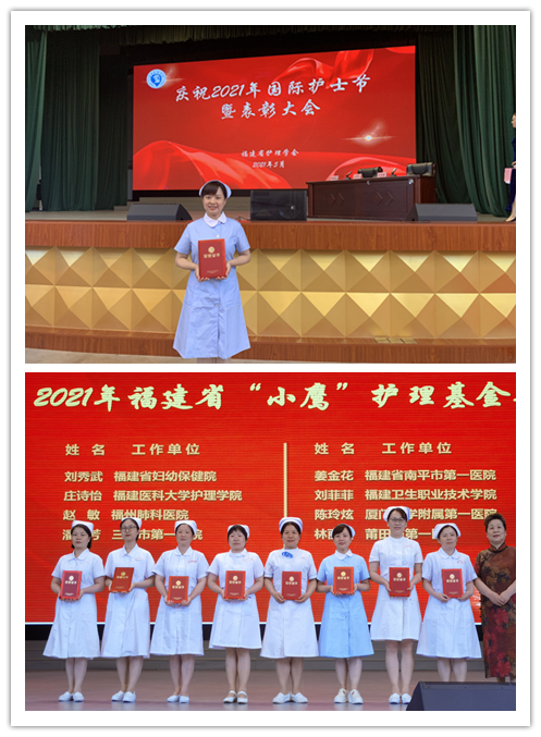 會上共有68名護士以及29家繼續(xù)護理學(xué)教育先進單位受到表彰,我校劉菲菲老師喜獲福建省“小鷹”護理基金獎。