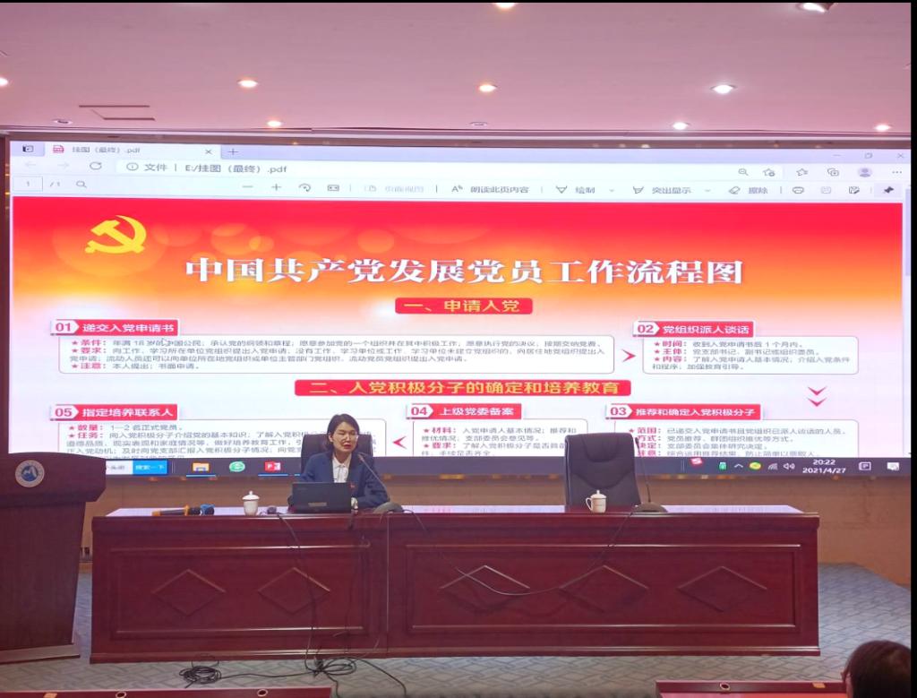 為幫助入黨積極分子進一步明確入黨程序,提升入黨積極分子的思想政治素質(zhì), 2021年5月17日晚,護理學(xué)院分黨校第一期培訓(xùn)班第十次集中授課于實訓(xùn)樓四樓報告廳順利舉行。本次黨課由護理學(xué)院黨總支專職組織員許慧瓊老師主講《發(fā)展黨員的程序》,護理學(xué)院300余名入黨積極分子參加。