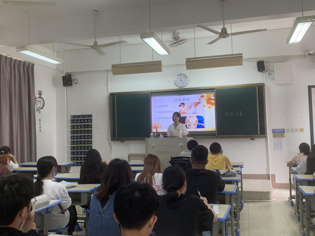 首先李淼淼老師介紹了老年保健與管理專業(yè)見習(xí)的目的與意義,通過見習(xí)了解養(yǎng)老行業(yè)發(fā)展概況,增加就業(yè)信心;了解崗位工作情況,明確學(xué)習(xí)方向;了解服務(wù)對象需求,激發(fā)創(chuàng)新動力。