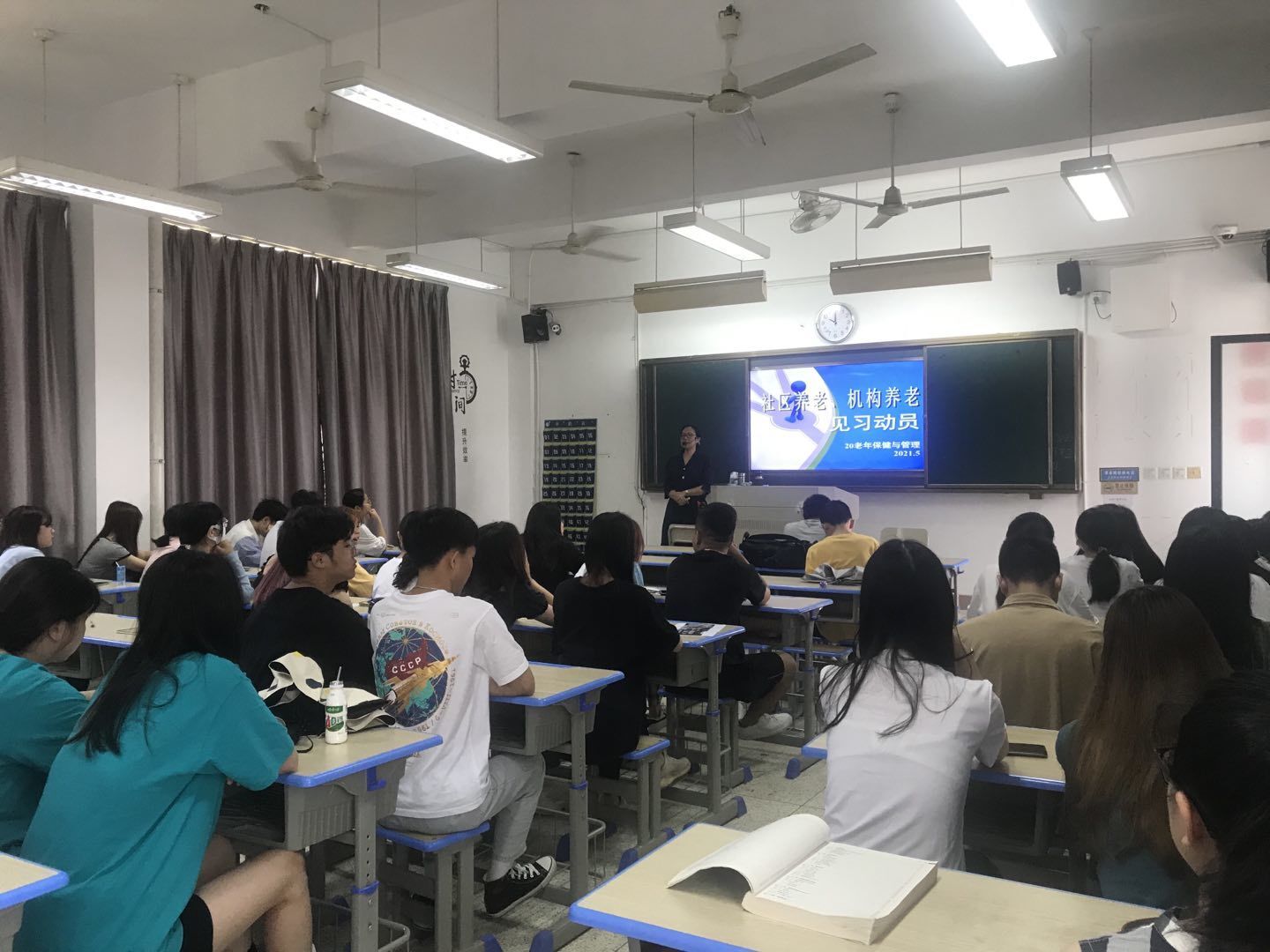 為了明確2020級老年保健與管理專業(yè)學(xué)生見習(xí)的目的和意義,保障見習(xí)工作的順利進(jìn)行,讓同學(xué)們對見習(xí)有更加深刻的了解,2021年5月26日護(hù)理學(xué)院老年保健與管理教研室在教學(xué)樓302召開2020級老年保健與管理專業(yè)見習(xí)動員大會。此次見習(xí)大會由老年保健與管理專業(yè)帶頭人李淼淼老師主持,老年保健與管理教研室全體專職教師、2020級老年保健與管理301班輔導(dǎo)員王翠萍老師及全體學(xué)生參與此次大會。