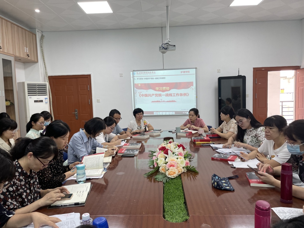 護理學院黨總支學習《中國共產(chǎn)黨統(tǒng)一戰(zhàn)線工作條例》和中共福建省委《關(guān)于貫徹〈中國共產(chǎn)黨統(tǒng)一戰(zhàn)線工作條例〉的實施意見》