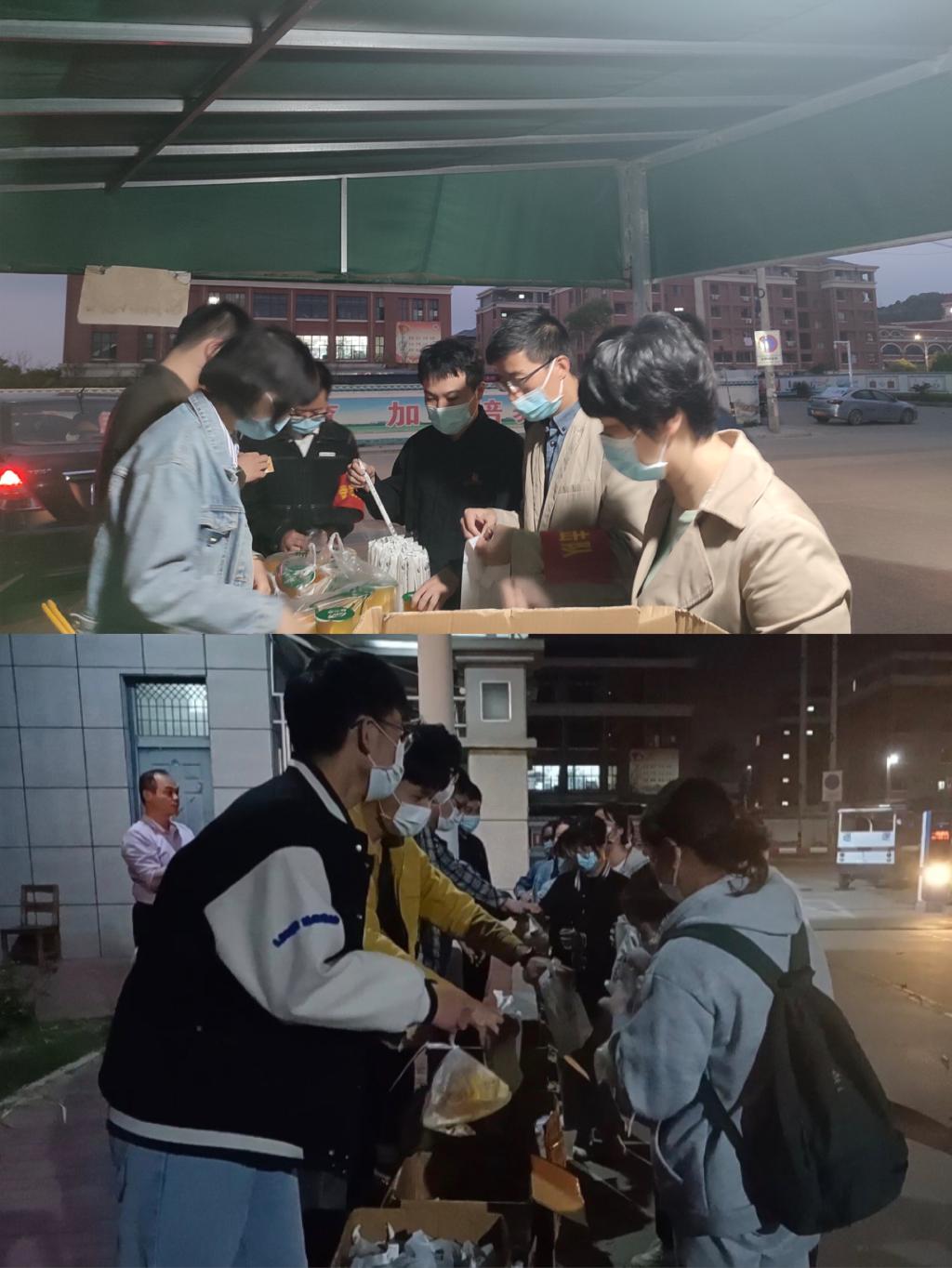 夜已深,校門口路燈下有翹首以盼的輔導(dǎo)員老師們,還有為他們備下一份份愛心便當(dāng)?shù)耐瑢W(xué)們。一條又一條的信息焦急地詢問:“到集合地了嗎?”一通又一通的電話反復(fù)地?fù)艽颍骸暗擒嚵藛???/p>