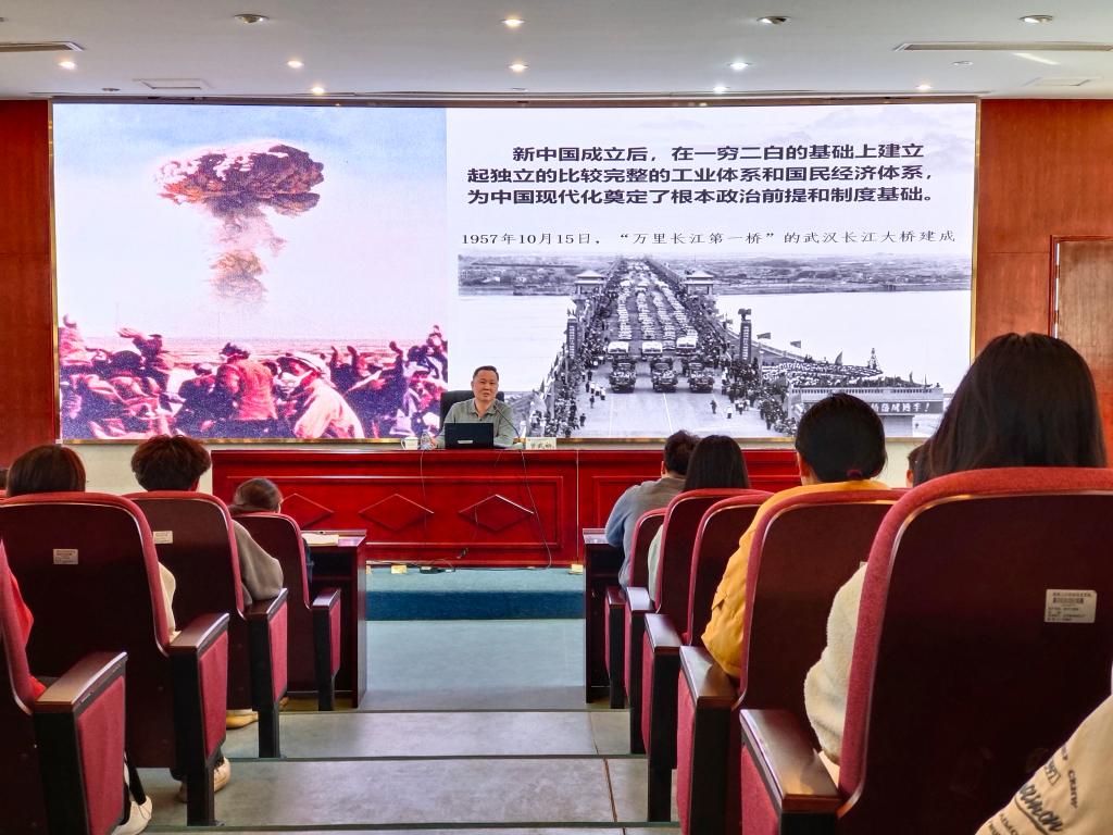 曾武祈以“執(zhí)青春之筆繪就中國式現(xiàn)代化新畫卷”為題,從歷史經(jīng)驗、制度優(yōu)勢、文明形態(tài)等維度出發(fā),向師生們深刻解讀了黨的二十大明確提出并系統(tǒng)闡述的中國式現(xiàn)代化理論。