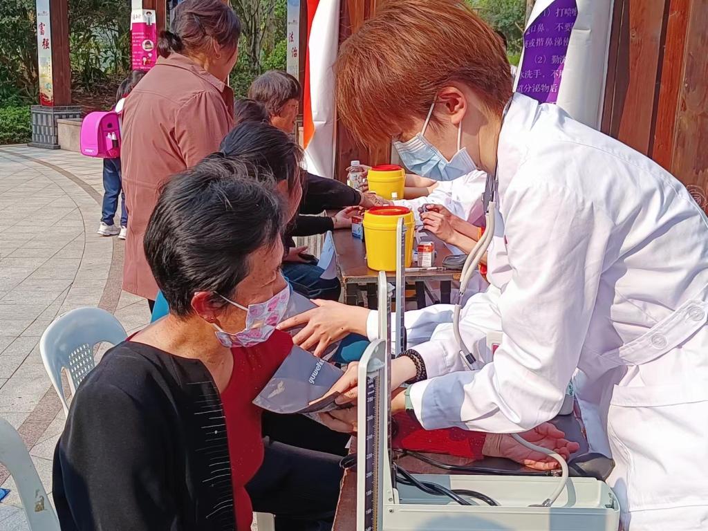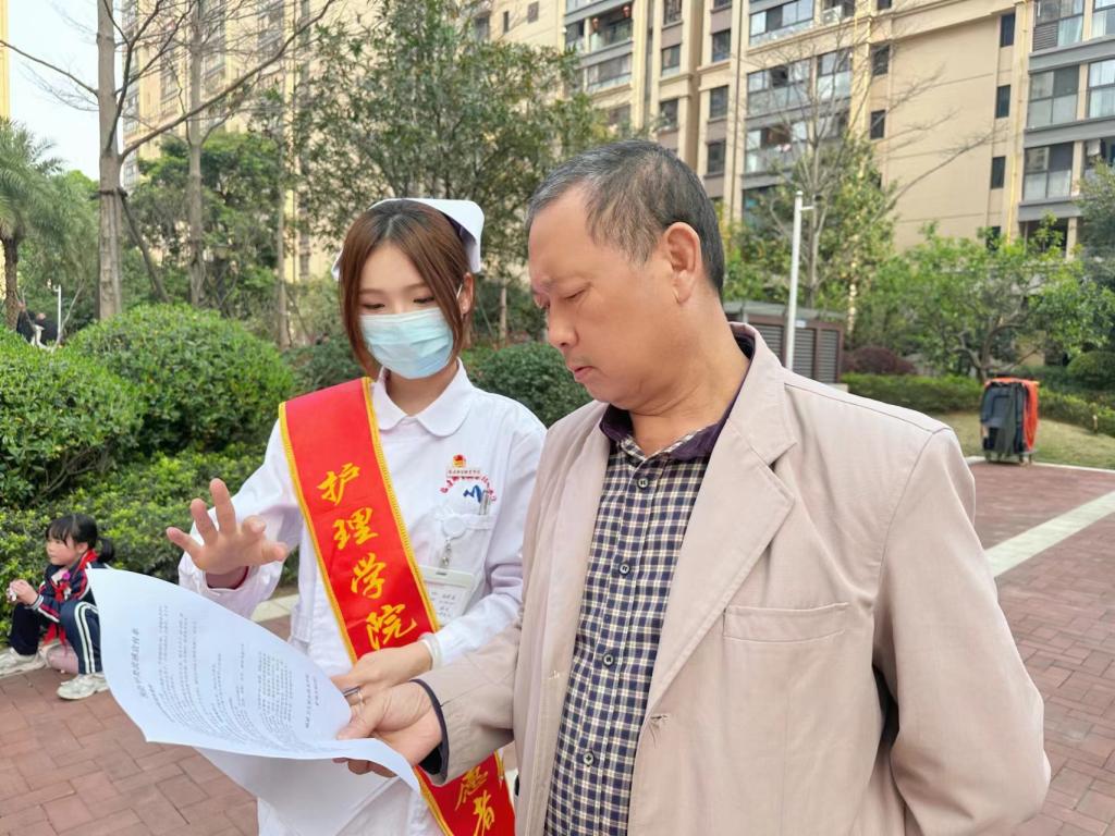 公益義診,守護健康。3月21日下午,護理學院攜手中鐵城居委會走進中鐵城社區(qū)舉行“學雷鋒,行義診”志愿服務(wù)活動。活動現(xiàn)場,團學干部免費為居民測血糖、量血壓,同時,還進行了心肺復蘇、海姆立克急救法等急救知識的科普以及操作。同學們與居民親切交談,給居民們進行健康宣教,耐心解答患者問題。讓居民們了解更多健康知識,提高居民自我保健意識,增強了居民對一些常見病、多發(fā)病的認識。