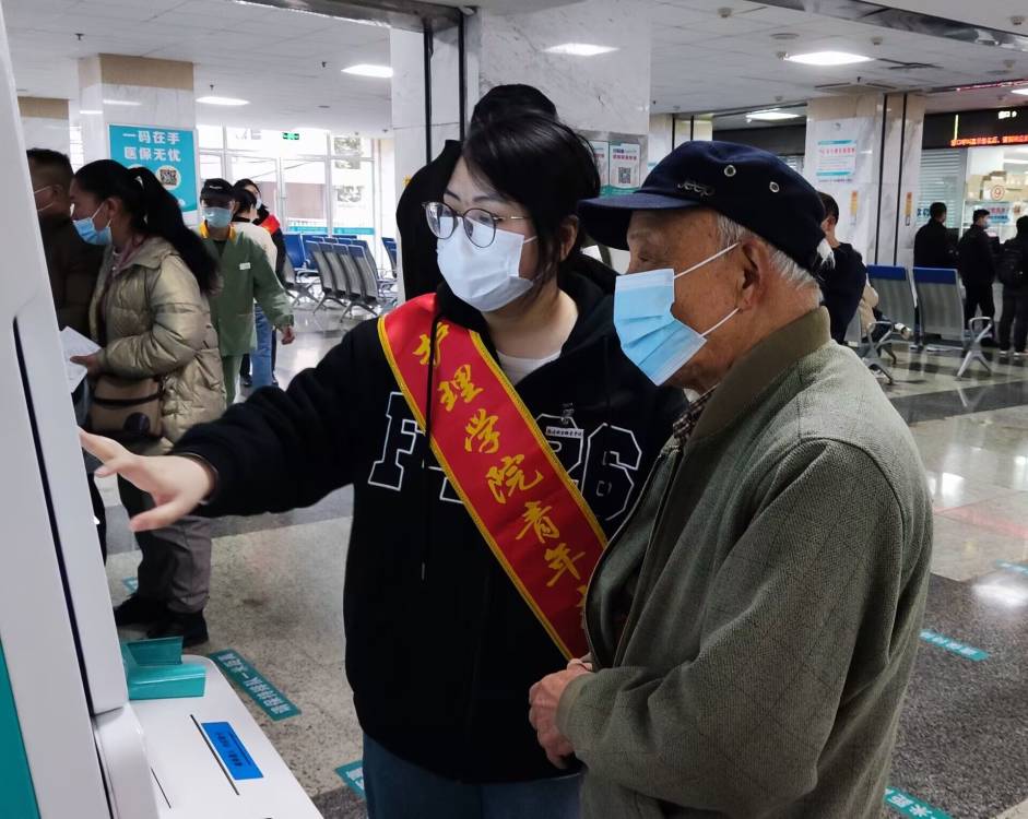 愛心導診,便民利民。護理學院先后組織學子在3月15日、3月16日在福建醫(yī)科大學附屬第一醫(yī)院和福州中醫(yī)院進行導診志愿服務(wù)活動?;顒又校驹刚邆冊卺t(yī)院工作人員的指導下快速投入到志愿者崗位,分組在醫(yī)院門診大廳、醫(yī)技樓等區(qū)域為患者和家屬提供導醫(yī)導診、文明勸導、咨詢答疑、協(xié)助自助機使用、維護就診秩序等志愿服務(wù)。“請問這項檢查要去哪里做?”“手機掛號繳費怎么弄?”“請幫我看一下,這張單子要交到哪?”……面對各種各樣的提問和求助,志愿者們始終熱情耐心地解答,切實幫助患者和家屬解決就診問題。