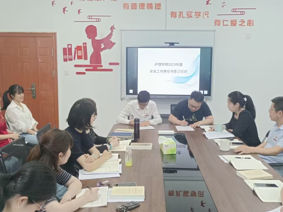 最后,龔海蓉與各教研室主任、林來元與各輔導(dǎo)員分別簽訂《護(hù)理學(xué)院2023年教研室安全工作責(zé)任書》、《護(hù)理學(xué)院2023年學(xué)生安全穩(wěn)定工作責(zé)任書》,做到層層壓實(shí)安全責(zé)任,層層傳導(dǎo)工作要求,推動(dòng)安全責(zé)任落地落實(shí)落細(xì)。