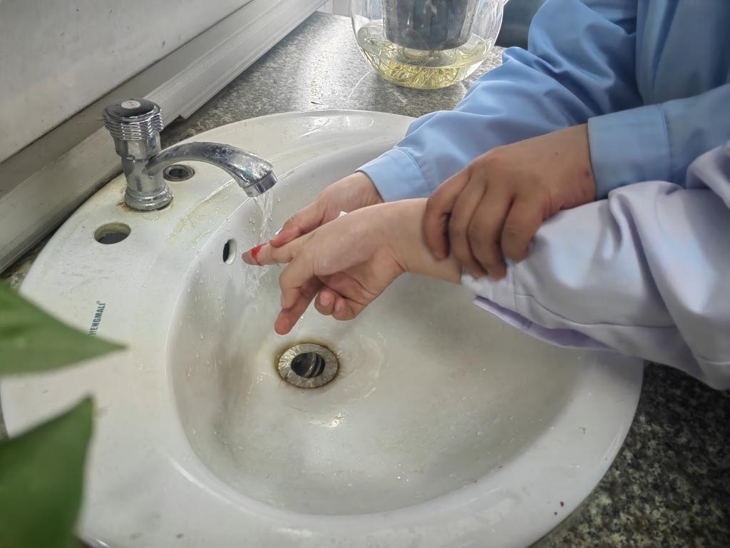 本次演練分為銳器傷應(yīng)急處理演練、應(yīng)急逃生演練(消防、地震)兩個(gè)部分進(jìn)行。第一部分,銳器傷應(yīng)急處理演練。集中講授易引起銳器傷發(fā)生的危險(xiǎn)行為,告知學(xué)生發(fā)生銳器傷不要驚慌,聽(tīng)從指揮,配合老師完成應(yīng)急處理流程,各位置工作人員維持現(xiàn)場(chǎng)秩序,確保實(shí)訓(xùn)室無(wú)發(fā)生其他安全事件。