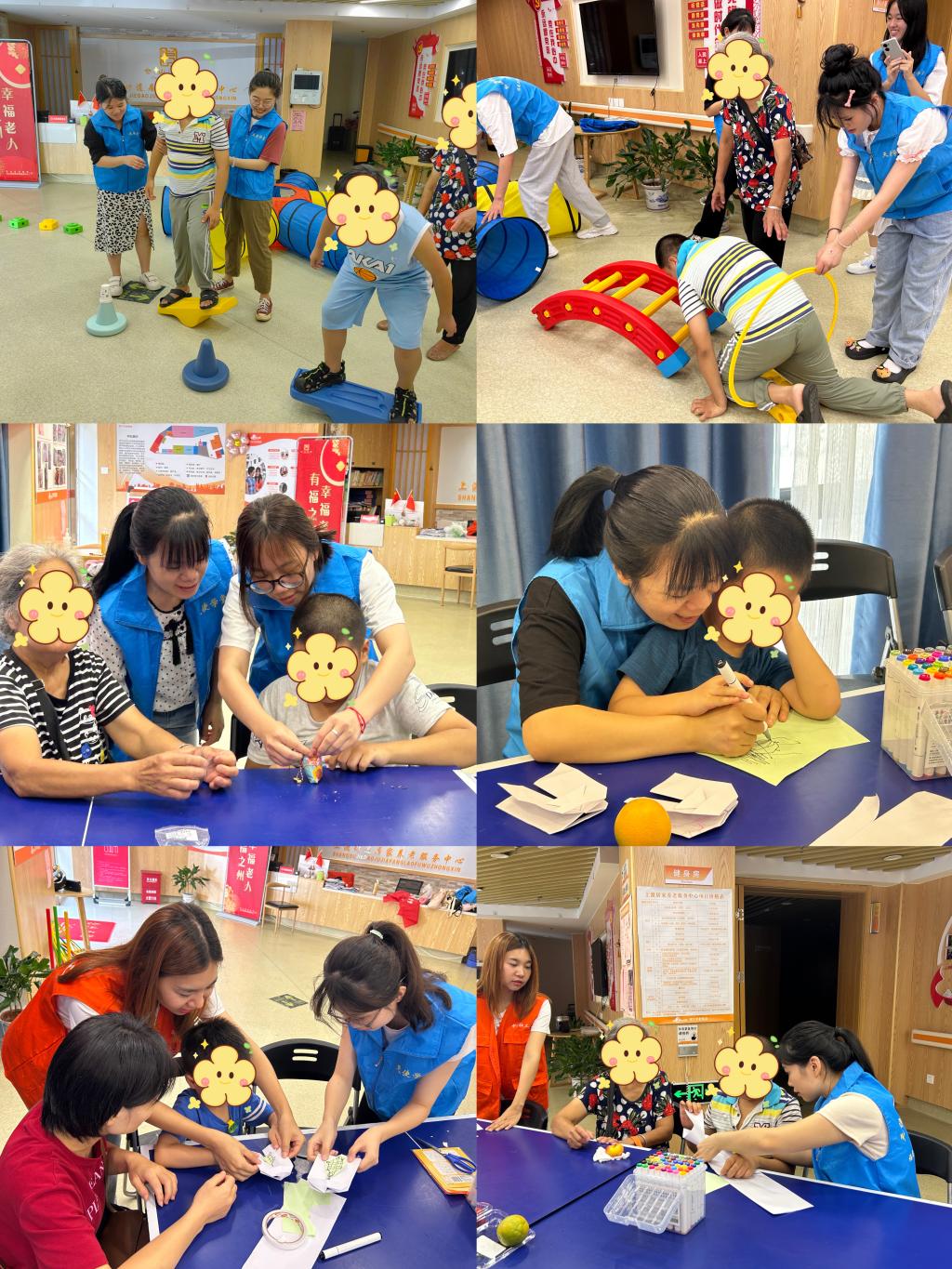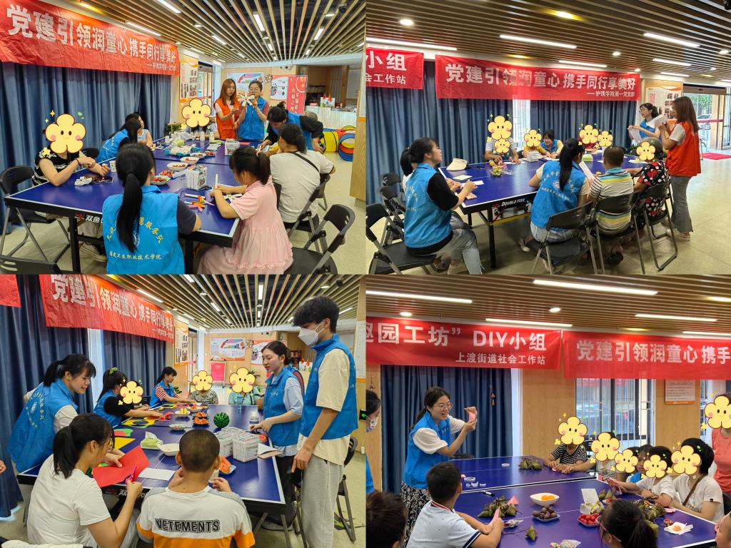 此次困境兒童幫扶系列活動結合節(jié)日節(jié)點和夏季特點分別以“端午節(jié)、建黨節(jié)、風車、西瓜、烏龜”為分主題開展了五次活動。支部成員為困境兒童講繪本故事,帶兒童跳熱身操,開展感統(tǒng)訓練和手工活動。