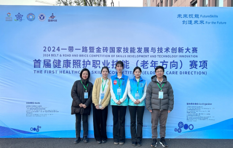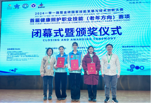 11月27日至12月1日,2024“一帶一路”暨金磚國家技能發(fā)展與技術(shù)創(chuàng)新大賽(簡稱“金磚大賽”)首屆健康照護職業(yè)技能(老年方向)賽項選拔賽與總決賽在山東聊城舉行。首屆健康照護職業(yè)技能(老年方向)賽項,是老年保健與管理專業(yè)的一次集中展示,也是行業(yè)集聚、專家學(xué)者匯聚的盛會。來自全國的112支代表隊參賽。經(jīng)過4天的激烈比拼,我校23老保302班姚夢潔23老保301班的元欣怡兩位同學(xué)憑借扎實的專業(yè)知識與精湛的實操技能在眾多選手中脫穎而出,分別榮獲區(qū)域賽(選拔賽)二等獎與三等獎,我校老年保健與管理專業(yè)教師陳心銘憑借出色的專業(yè)素養(yǎng)與豐富的實踐經(jīng)驗,榮獲決賽(職工組)三等獎。