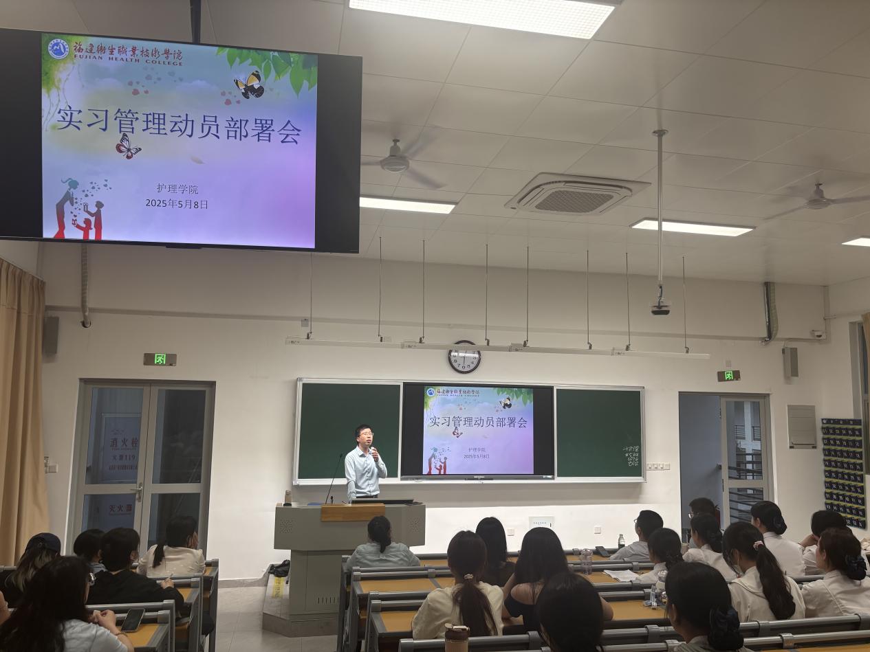 為加強(qiáng)學(xué)生實(shí)習(xí)業(yè)務(wù)指導(dǎo)和日常教育管理工作,幫助學(xué)生順利完成實(shí)習(xí)任務(wù),5月8日晚,護(hù)理學(xué)院在學(xué)院第五階梯教室召開(kāi)2023級(jí)護(hù)理、助產(chǎn)專(zhuān)業(yè)學(xué)生實(shí)習(xí)動(dòng)員部署會(huì)。護(hù)理學(xué)院黨委書(shū)記林穎峰、副書(shū)記林來(lái)元、副院長(zhǎng)林浩、2023級(jí)輔導(dǎo)員、各實(shí)習(xí)單位隊(duì)長(zhǎng)及副隊(duì)長(zhǎng)、省外自主實(shí)習(xí)學(xué)生共150余人參加了此次會(huì)議。