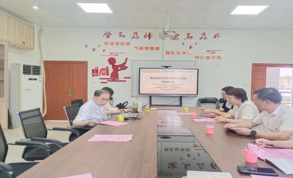 2025 年 6 月 27 日,我校組織臺(tái)灣養(yǎng)老及失智診療照護(hù)專家召開的“老年康養(yǎng)照護(hù)與基層衛(wèi)生人才閩臺(tái)產(chǎn)教融合實(shí)踐路徑專題研討會(huì)”在護(hù)理學(xué)院及厚德樓6樓會(huì)議室隆重舉行。臺(tái)灣為恭紀(jì)念醫(yī)院精神醫(yī)療中心、臺(tái)灣為恭失智共同照護(hù)中心、臺(tái)灣新生醫(yī)護(hù)管理??茖W(xué)校咨商中心梁珪瑜主任與臺(tái)灣朝陽(yáng)科技大學(xué)管理學(xué)院、臺(tái)灣實(shí)踐大學(xué)管理學(xué)院蘇志誠(chéng)教授、我校校長(zhǎng)徐偉、副校長(zhǎng)周雄、教務(wù)處處長(zhǎng)李其鏗、醫(yī)學(xué)院院長(zhǎng)鄧元榮、護(hù)理學(xué)院院長(zhǎng)肖春秀及老年保健與管理、康復(fù)醫(yī)學(xué)專業(yè)專業(yè)帶頭人和相關(guān)專業(yè)教師共同參與研討。會(huì)議聚焦閩臺(tái)產(chǎn)教融合新路徑,圍繞兩岸養(yǎng)老產(chǎn)業(yè)、康養(yǎng)照護(hù)、失智癥照護(hù)及基層衛(wèi)生人才協(xié)同培養(yǎng)等核心議題展開深入交流,旨在閩臺(tái)攜手共筑康養(yǎng)照護(hù)與基層衛(wèi)生人才培養(yǎng)新通道。